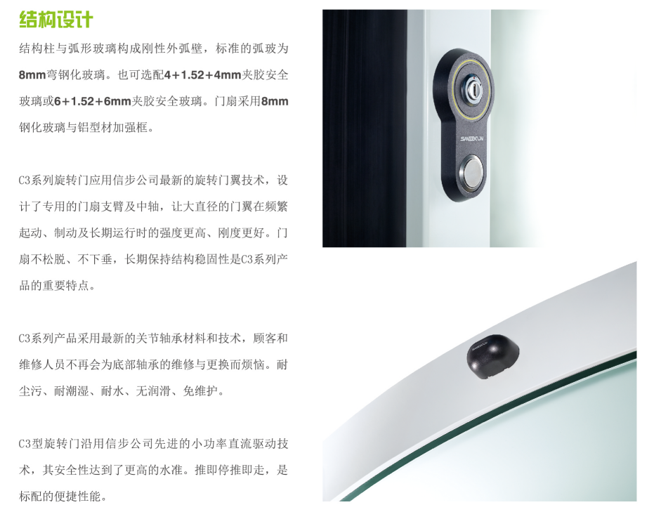 R3/R4.C系列三四翼旋轉(zhuǎn)門的起源,可以追溯到古老的木制門時(shí)代。高寒地區(qū)的人們發(fā)現(xiàn),在人員頻繁出入的重要場(chǎng)所安裝旋轉(zhuǎn)門,冬天能起到良好的保溫作用。